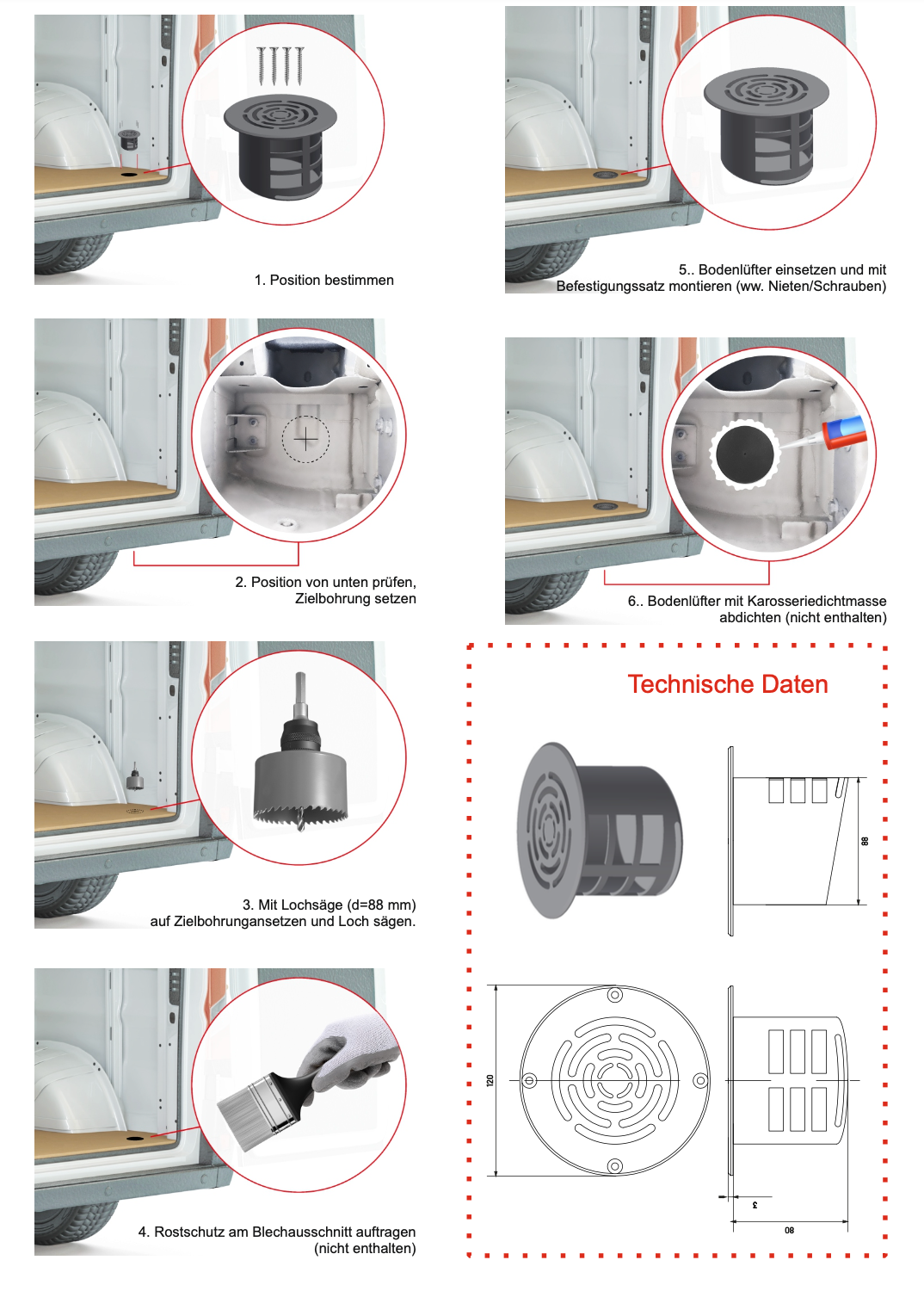 Bodenlüfter für die Raumbelüftung - Einbau in Campingfahrzeuge und Transporter